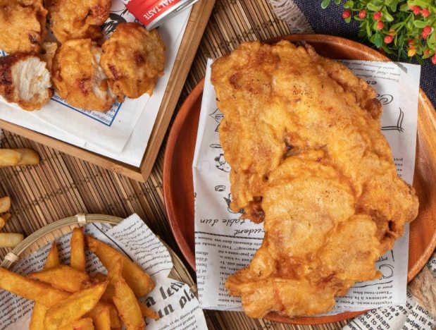 - 鱗片脆皮(顆粒粗的裹粉,如派克): 外皮會有明顯顆粒凸起,形成超酥脆的鱗片感,卡滋宣告顯。